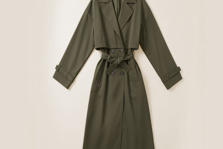 Avec son col à revers classique, ses épaulettes décoratives et son double boutonnage, elle combine parfaitement élégance et modernité.