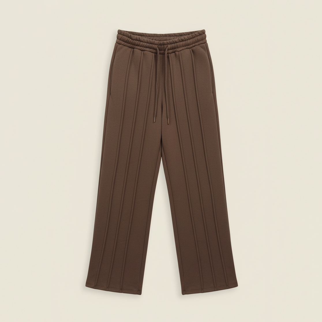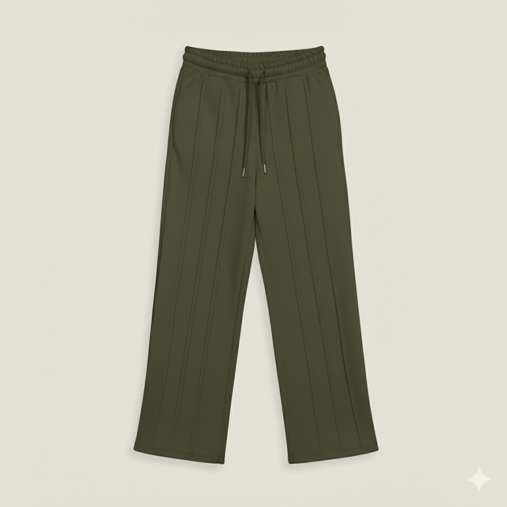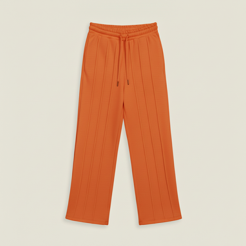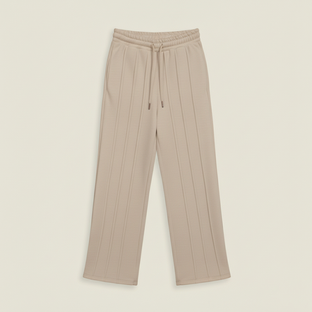 Pantalon confortable au design moderne, rehaussé de lignes verticales qui allongent la silhouette et apportent une touche élégante. Sa taille élastique et son cordon ajustable offrent un maintien agréable tout au long de la journée.