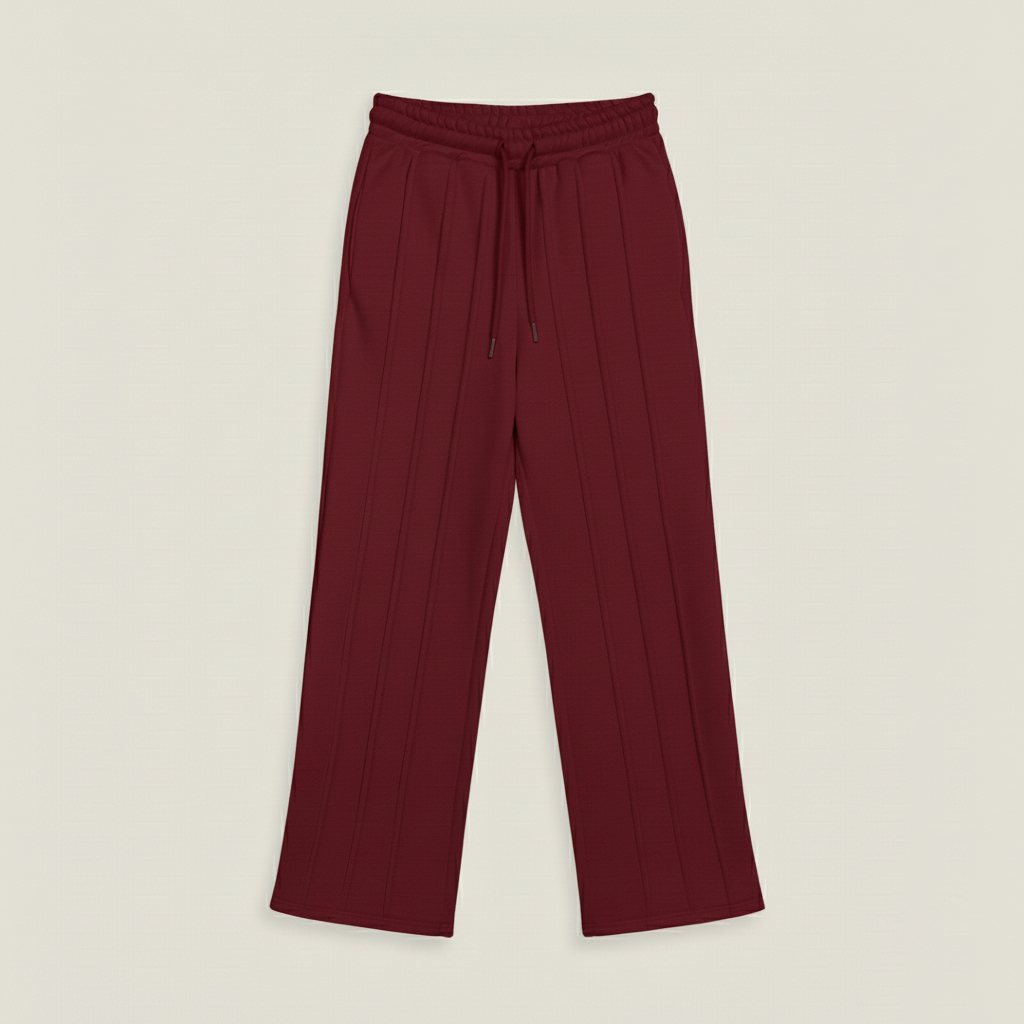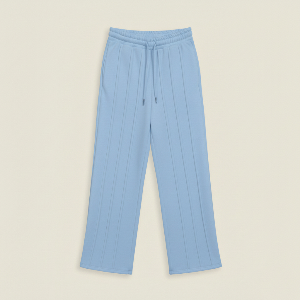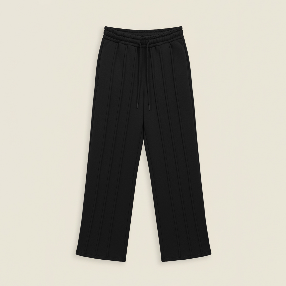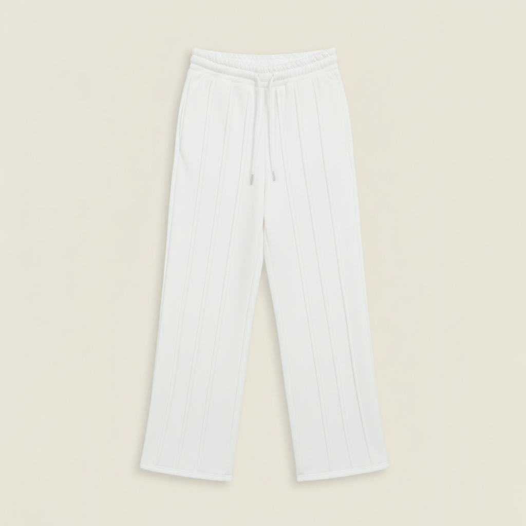 Pantalon confortable au design moderne, rehaussé de lignes verticales qui allongent la silhouette et apportent une touche élégante. Sa taille élastique et son cordon ajustable offrent un maintien agréable tout au long de la journée.