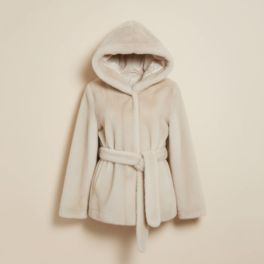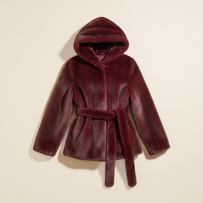 Ce blouson en fausse fourrure combine chaleur, confort et raffinement. Sa capuche large offre une protection optimale contre le vent et le froid, tandis que la ceinture à nouer met en valeur la taille tout en apportant une touche élégante.