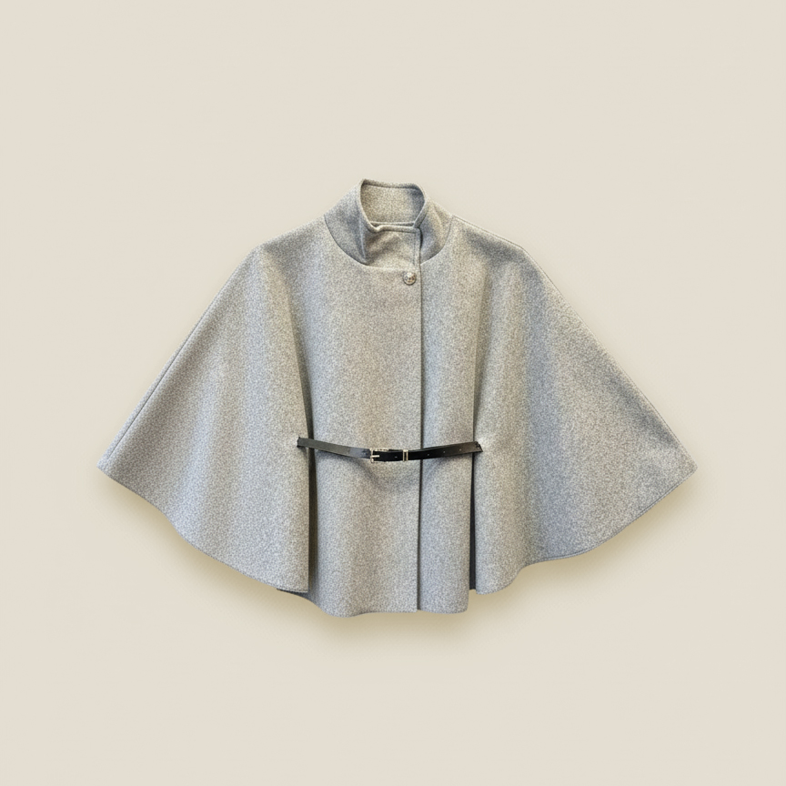 Élégante et intemporelle, cette cape structurée offre un tombé fluide qui met en valeur la silhouette sans effort. Son col montant apporte une touche moderne tandis que la fermeture par bouton décoratif assure maintien et style.