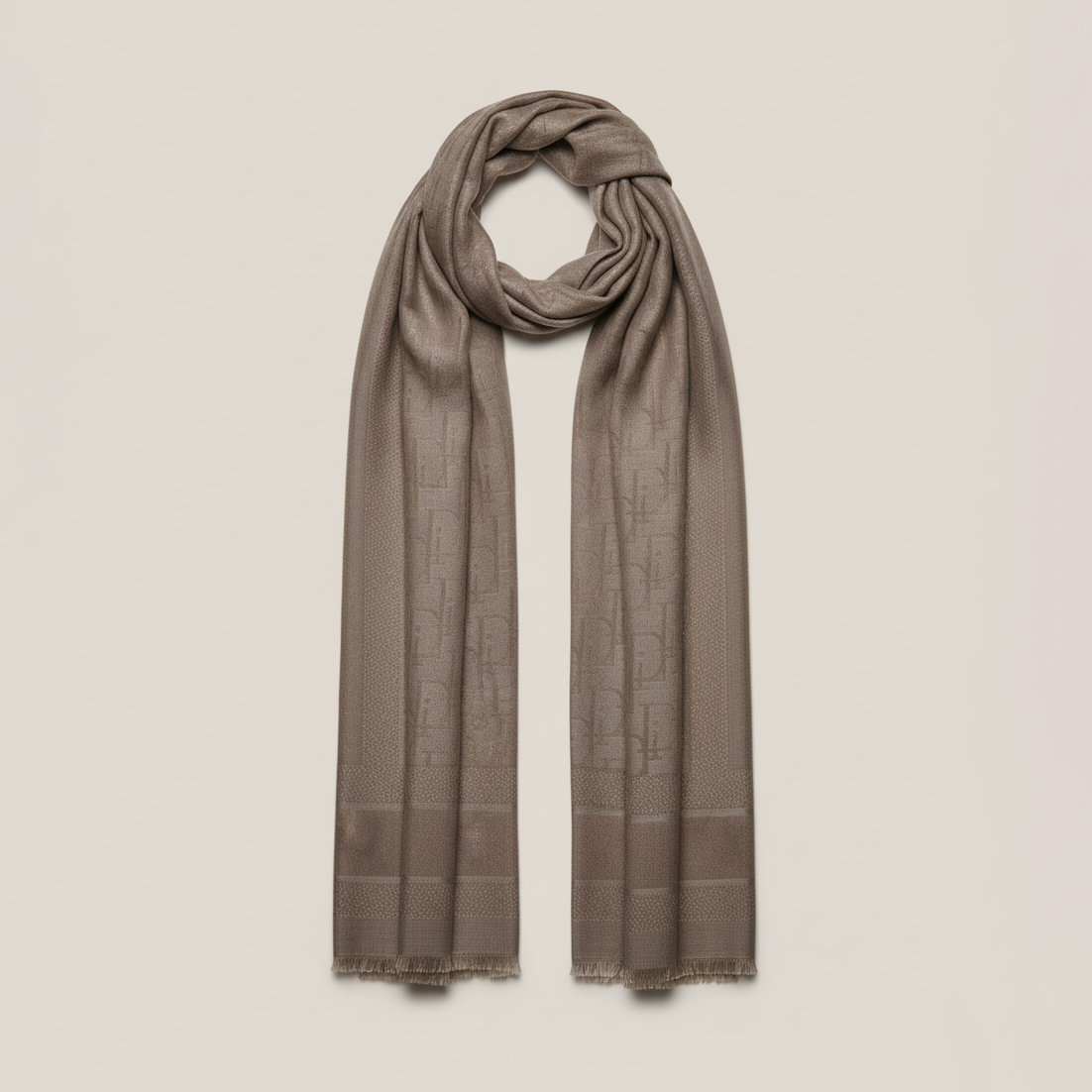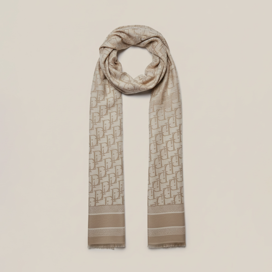 Apportez une touche élégante et raffinée à vos tenues avec cette écharpe à monogramme géométrique, parfaite pour les journées fraîches. Son motif sophistiqué et ses teintes neutres s’associent facilement à tout style vestimentaire.