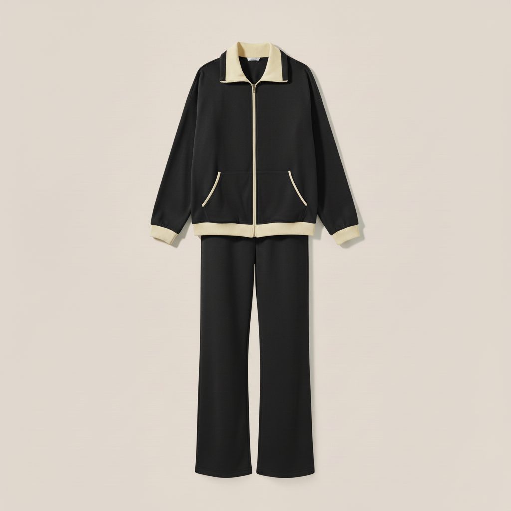 Cet ensemble jogging zippé a été conçu pour celles qui recherchent confort, style et simplicité.