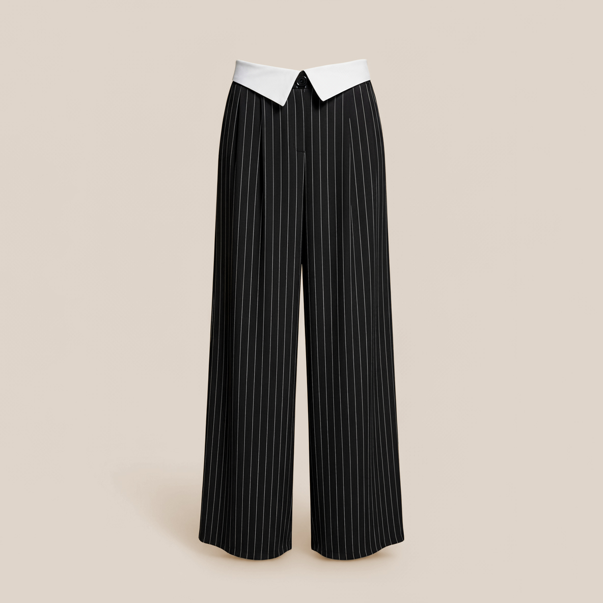 un pantalon large taille haute à pinces, avec ceinture à revers contrastée blanche