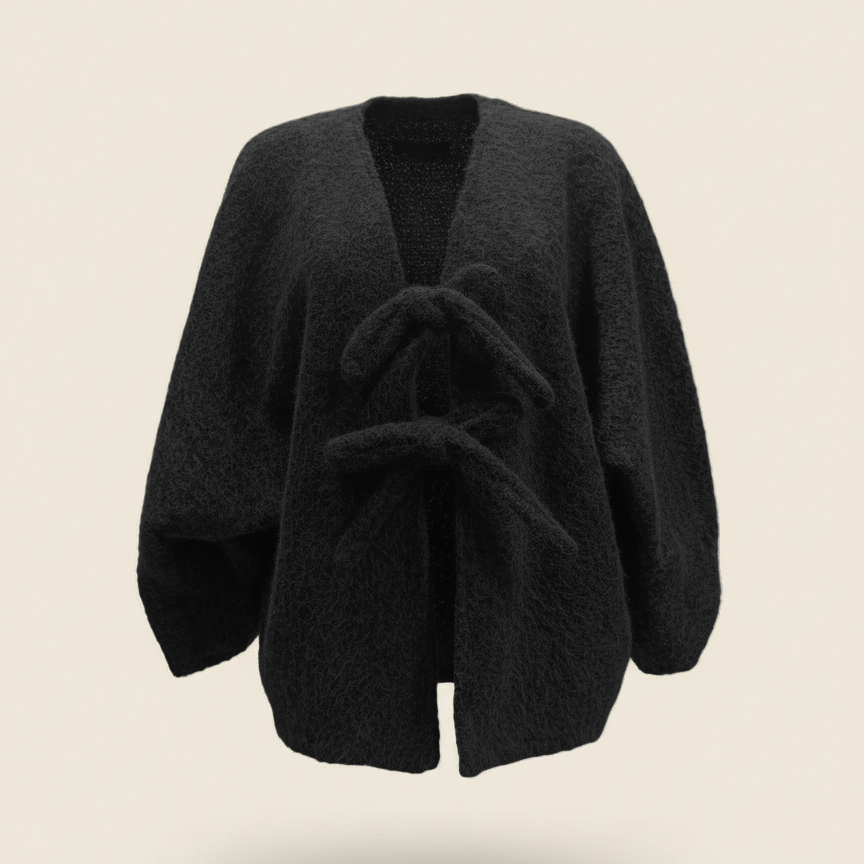 Ce gilet avec nœud a été imaginé pour celles qui aiment les pièces simples, élégantes et confortables.