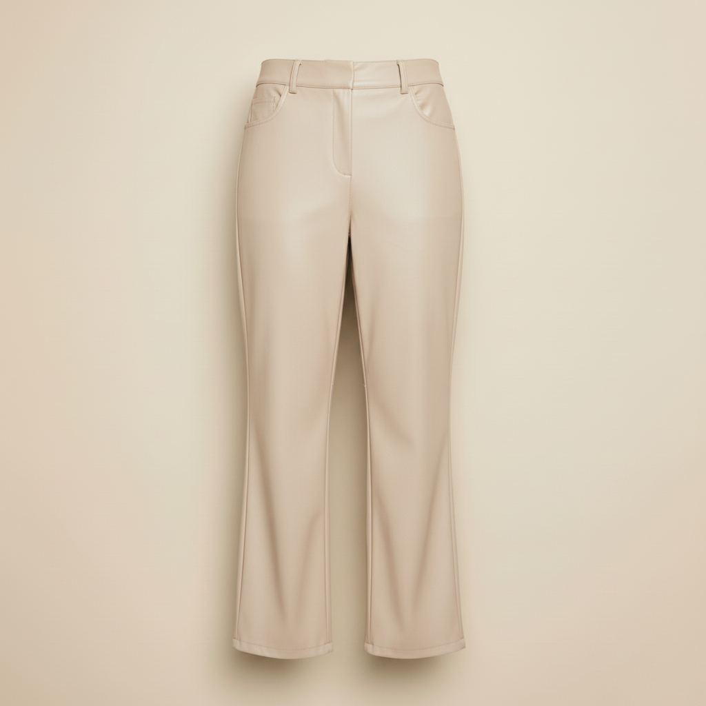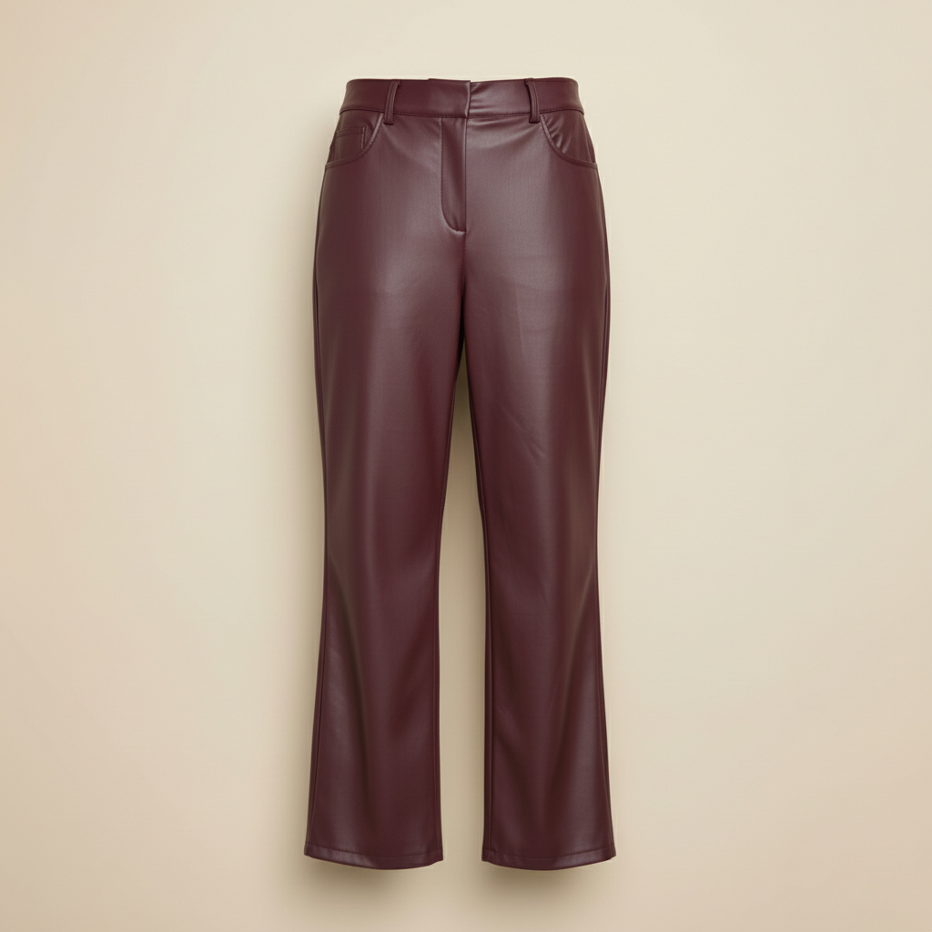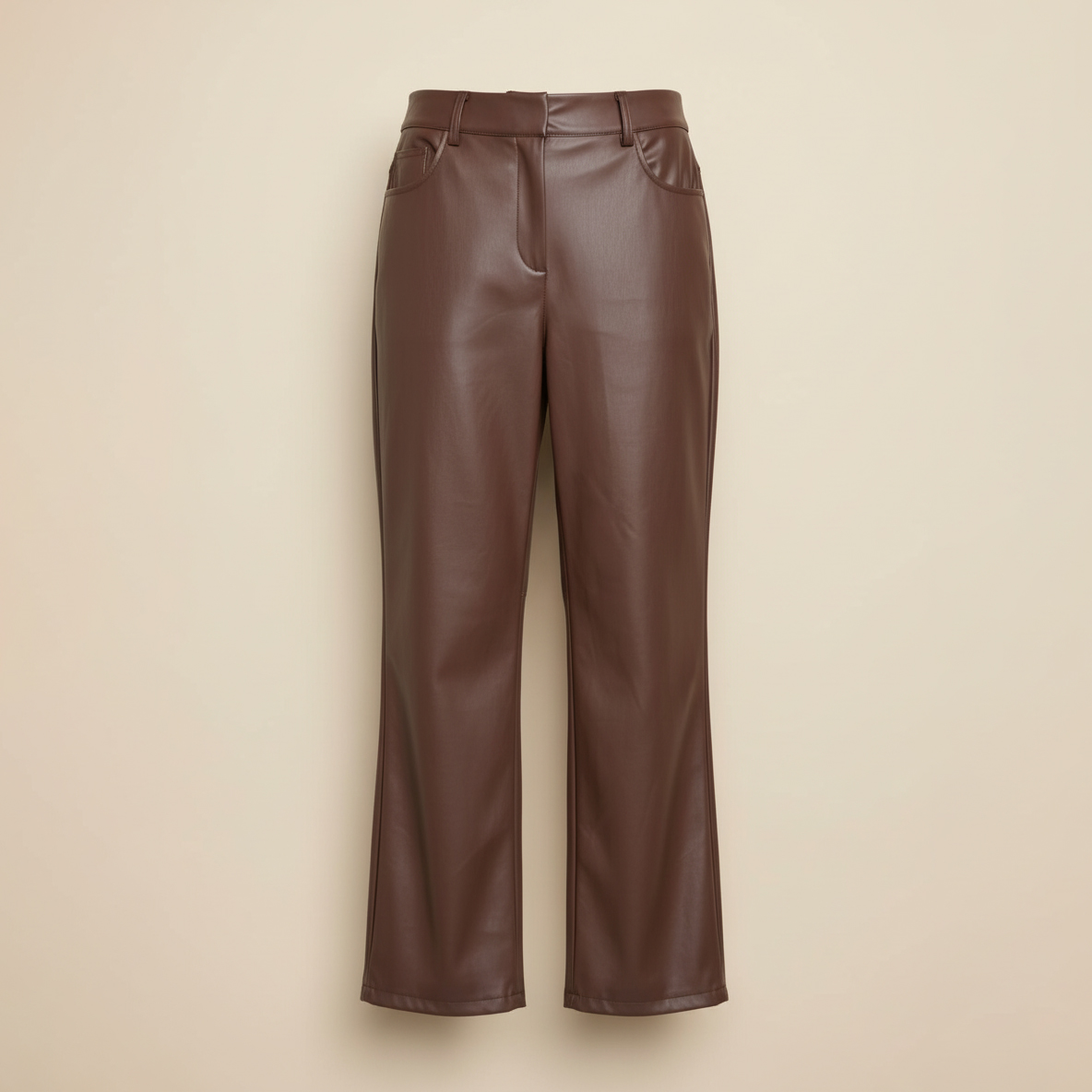 Un pantalon en simili cuir au tombé droit et structuré, parfait pour un look à la fois chic et affirmé. Une pièce incontournable pour la mi-saison et les soirées élégantes.