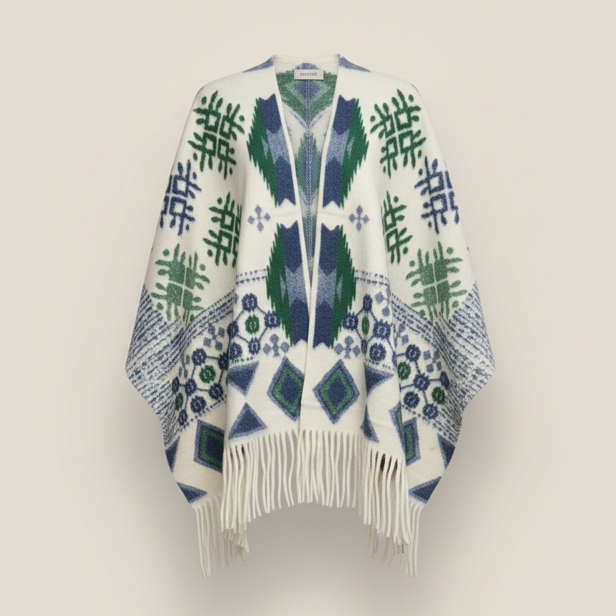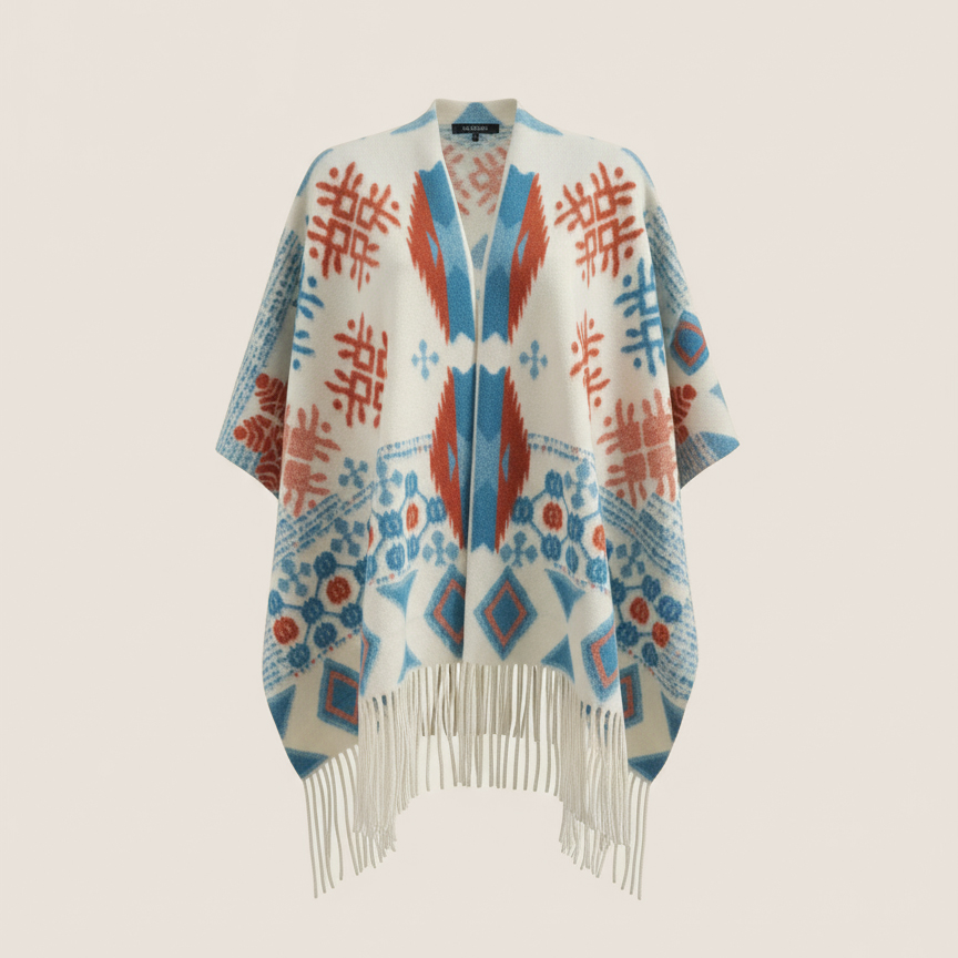 Les motifs inspirés des styles ethniques apportent une touche d’originalité, tandis que les franges au bas du poncho ajoutent un joli mouvement à chaque pas.
