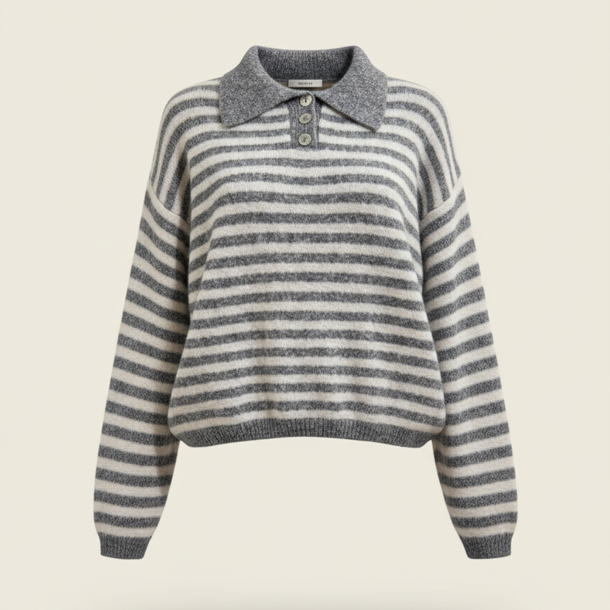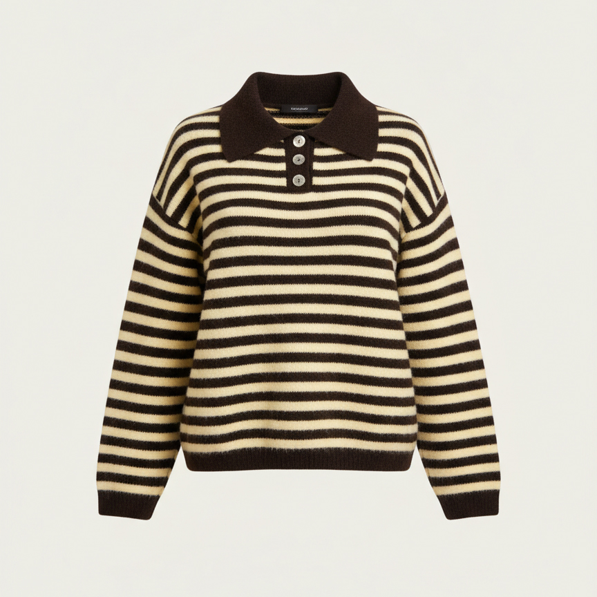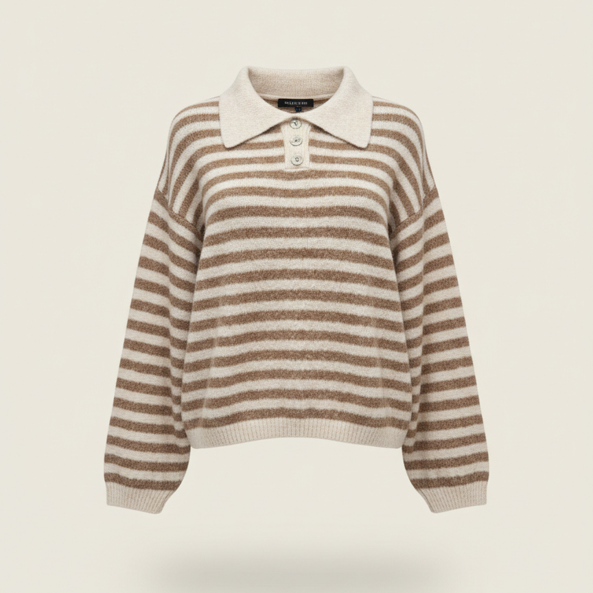 Ce pull en maille est conçu pour celles qui recherchent un vêtement à la fois simple et travaillé. Ses rayures horizontales et son col structuré en font une pièce forte de votre dressing, sans effort.