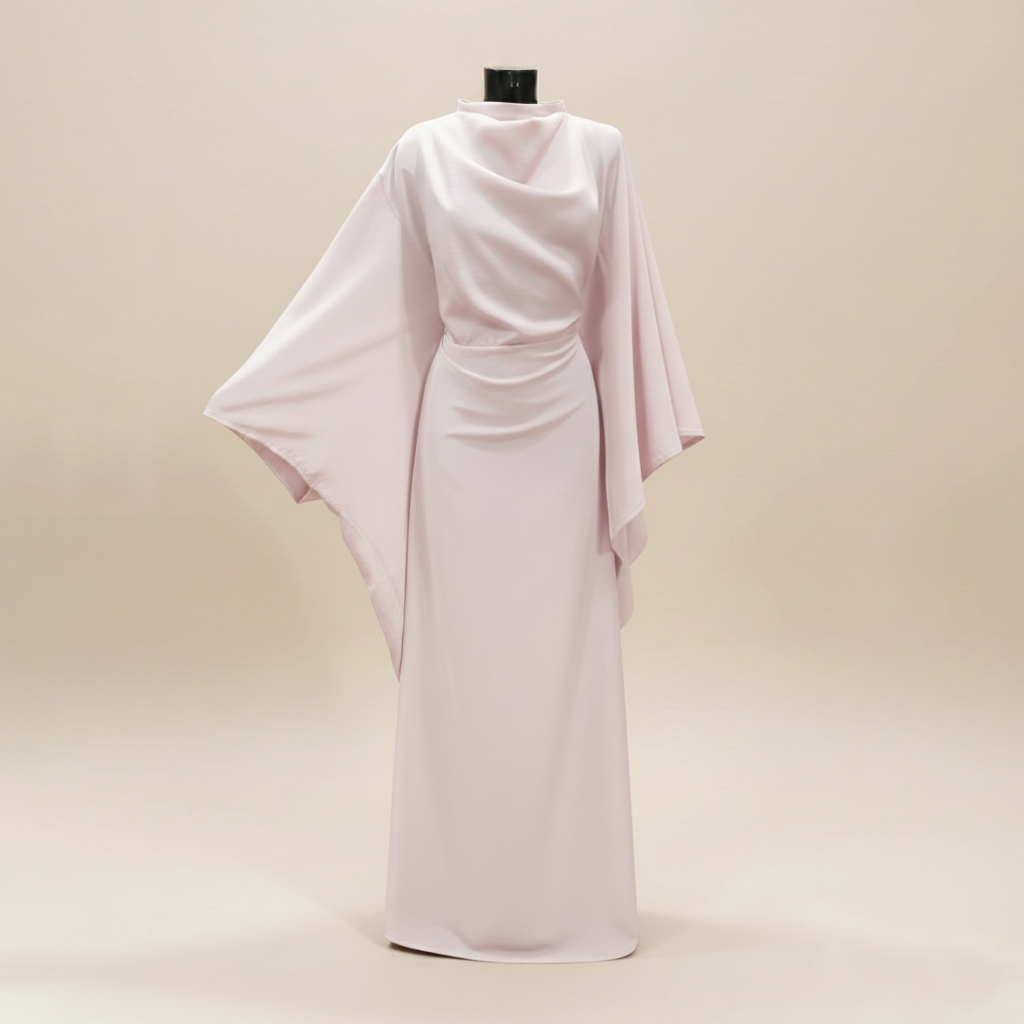 Comment la porter ? Pour un look de soirée, marie-la avec des talons fins et un sac structuré. Son tissu satiné/mat capte la lumière juste ce qu’il faut pour briller sans en faire trop. C’est la définition même de la modest fashion chic.